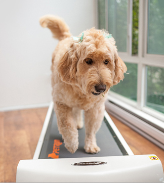 Psy pozostające u nas w domu mogą skorzystać z profesjonalnej bieżni dla zwierząt. Usługę oferujemy również na życzenie, w formie pojedynczych, osobnych treningów.